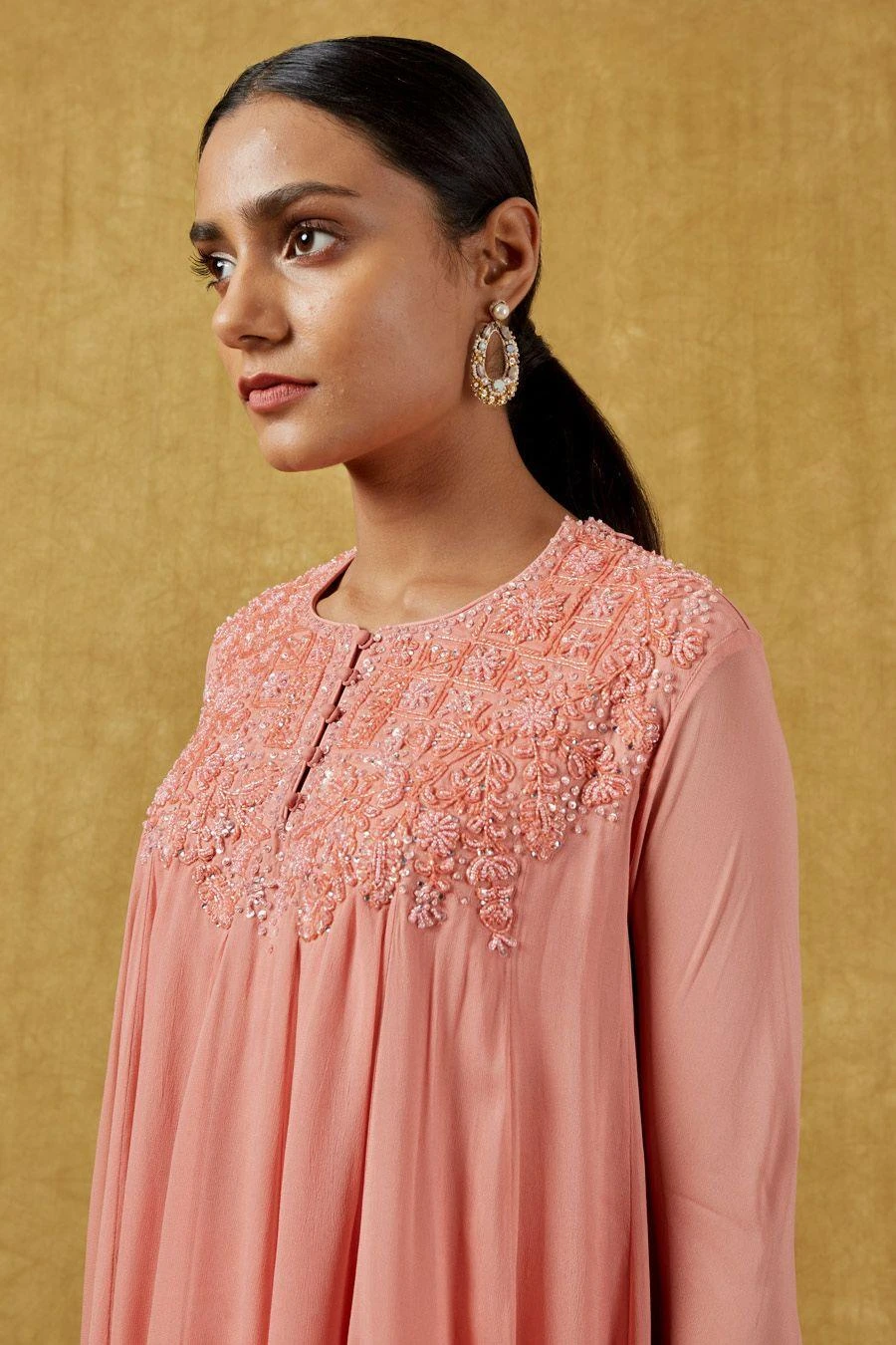 Embroidery : Pearl and Sequin embroidery highlighted with crystals