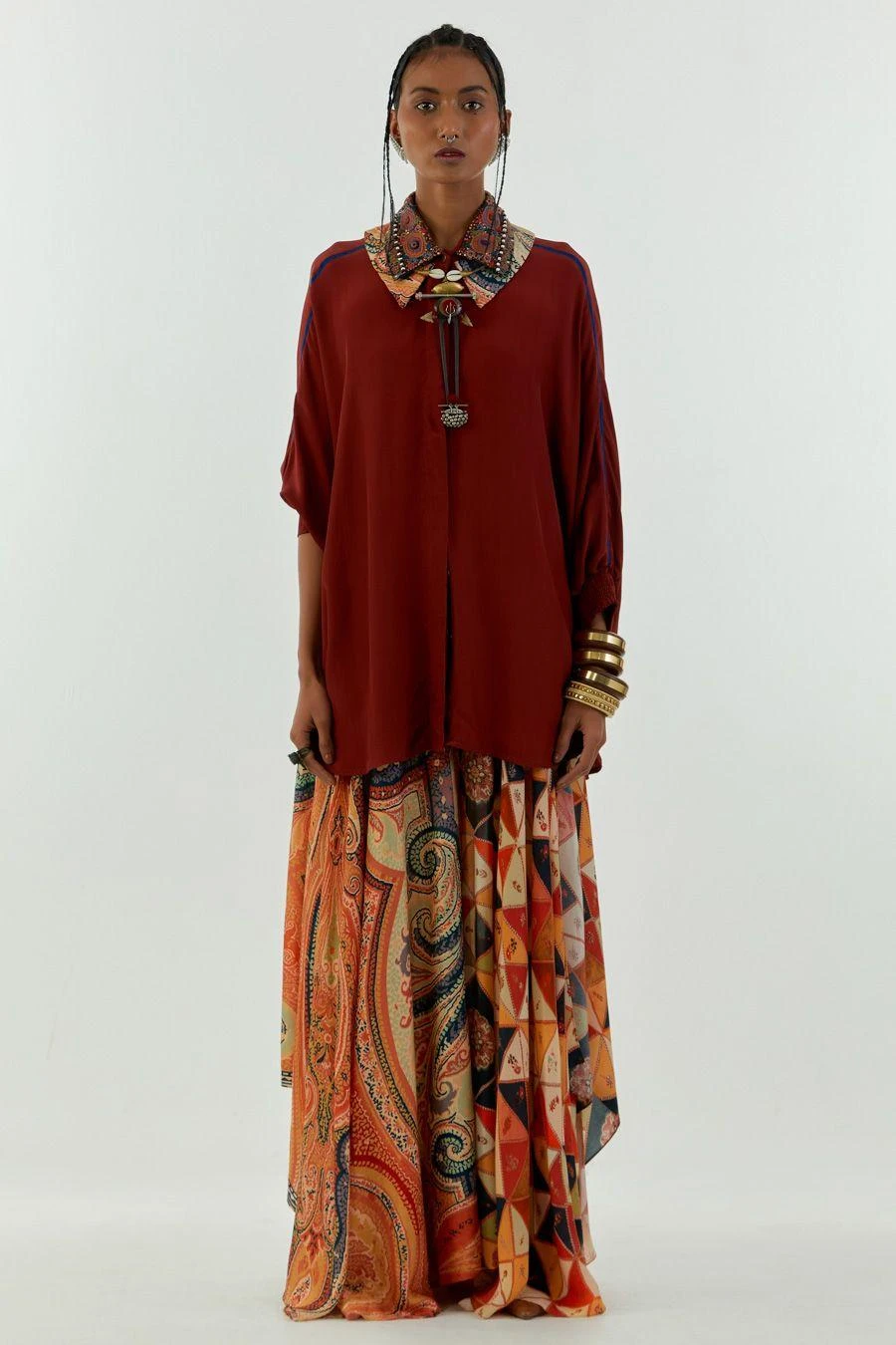 Maximise the life of your wardrobe with this exquisite shirt. Crafted in natural crepe, this mandala shirt features an embellished collar. Pair it with coordinating trousers from the collection to complete the set.