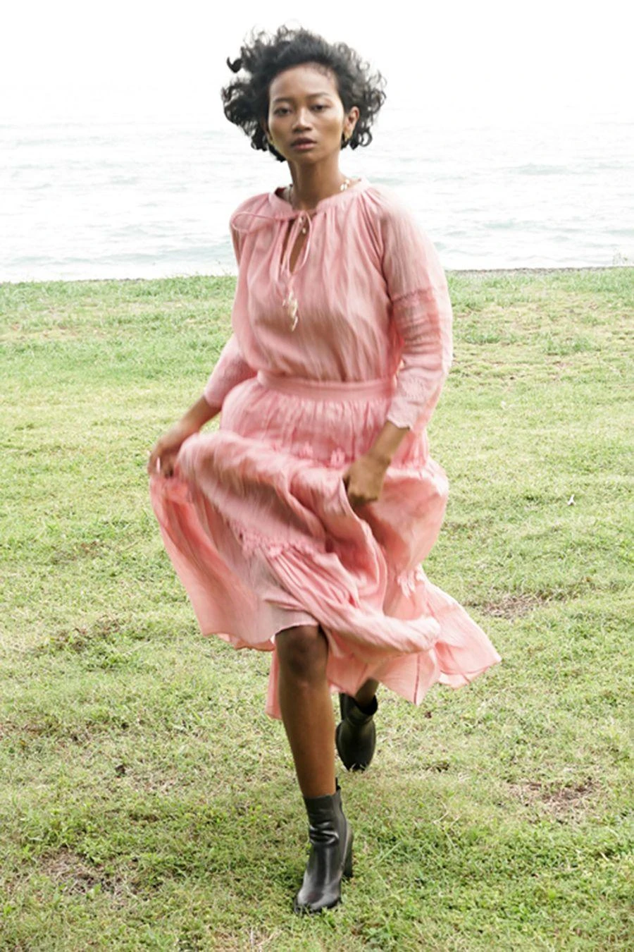 The perfect amalgamation of style and comfort, this top is perfect for a day out. Crafted in chanderi cotton silk, this top with pintuck detailing on the sleeves comes with a V-neckline and handmade tassels.