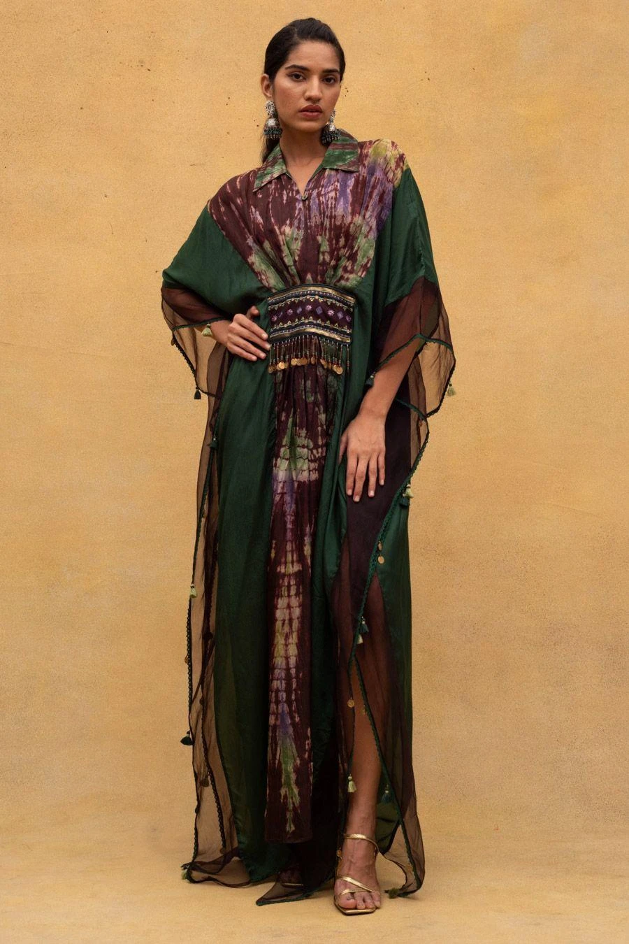 CAPISVIRLEO Brown & Olive Habutai Silk Kaftan