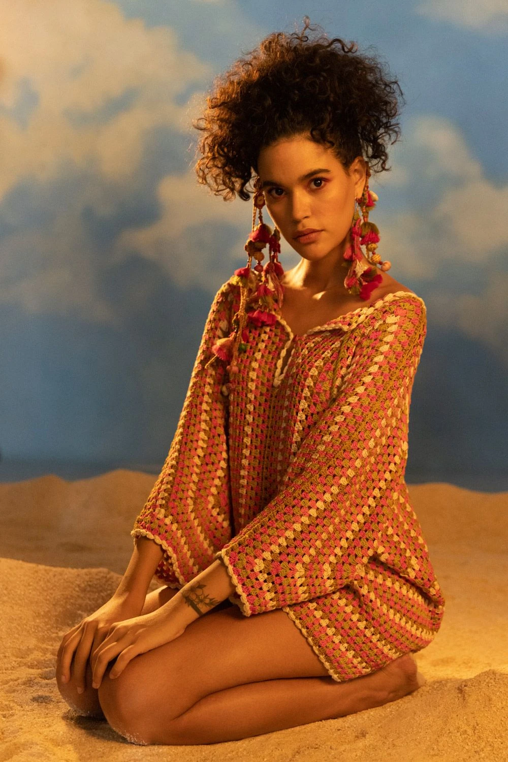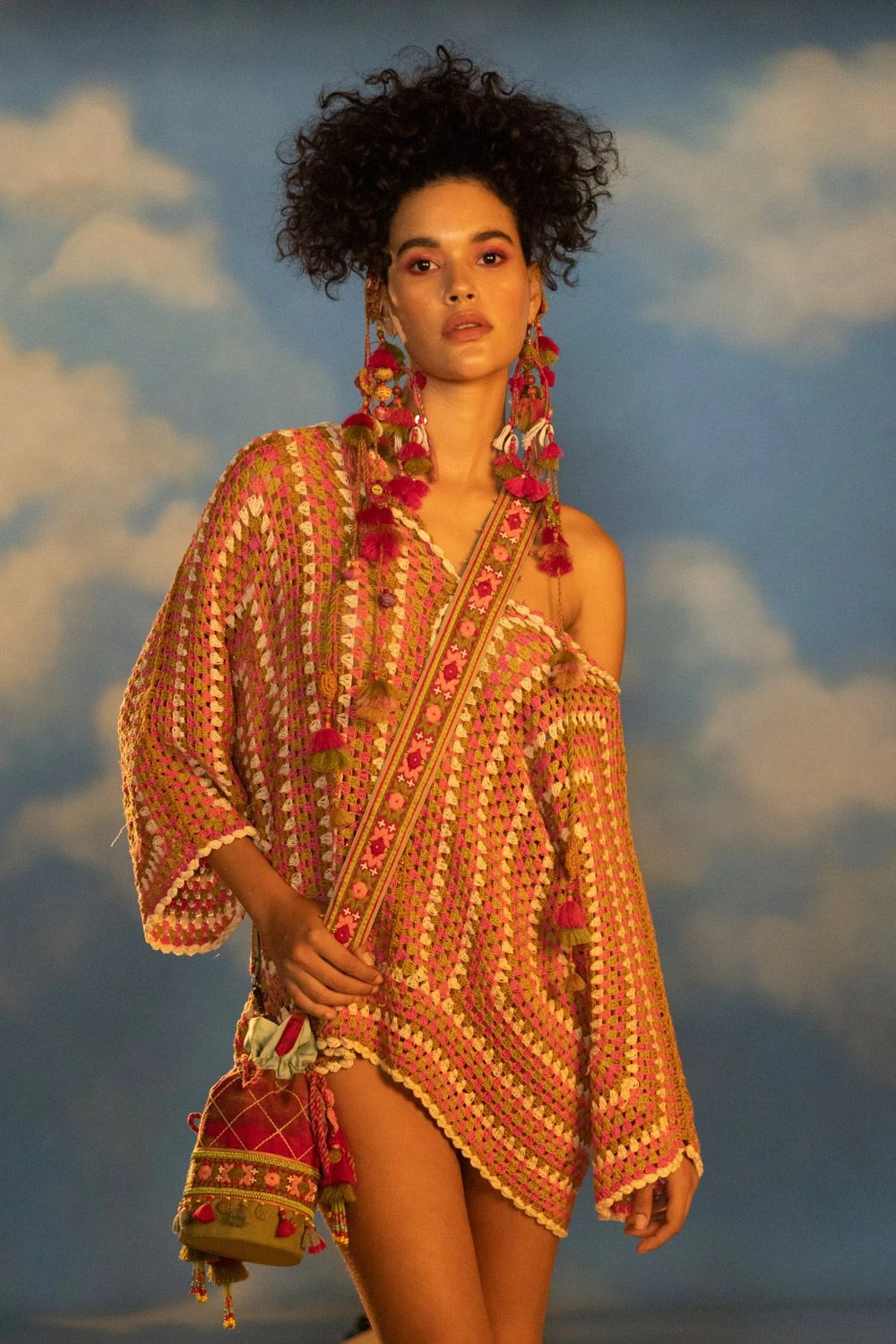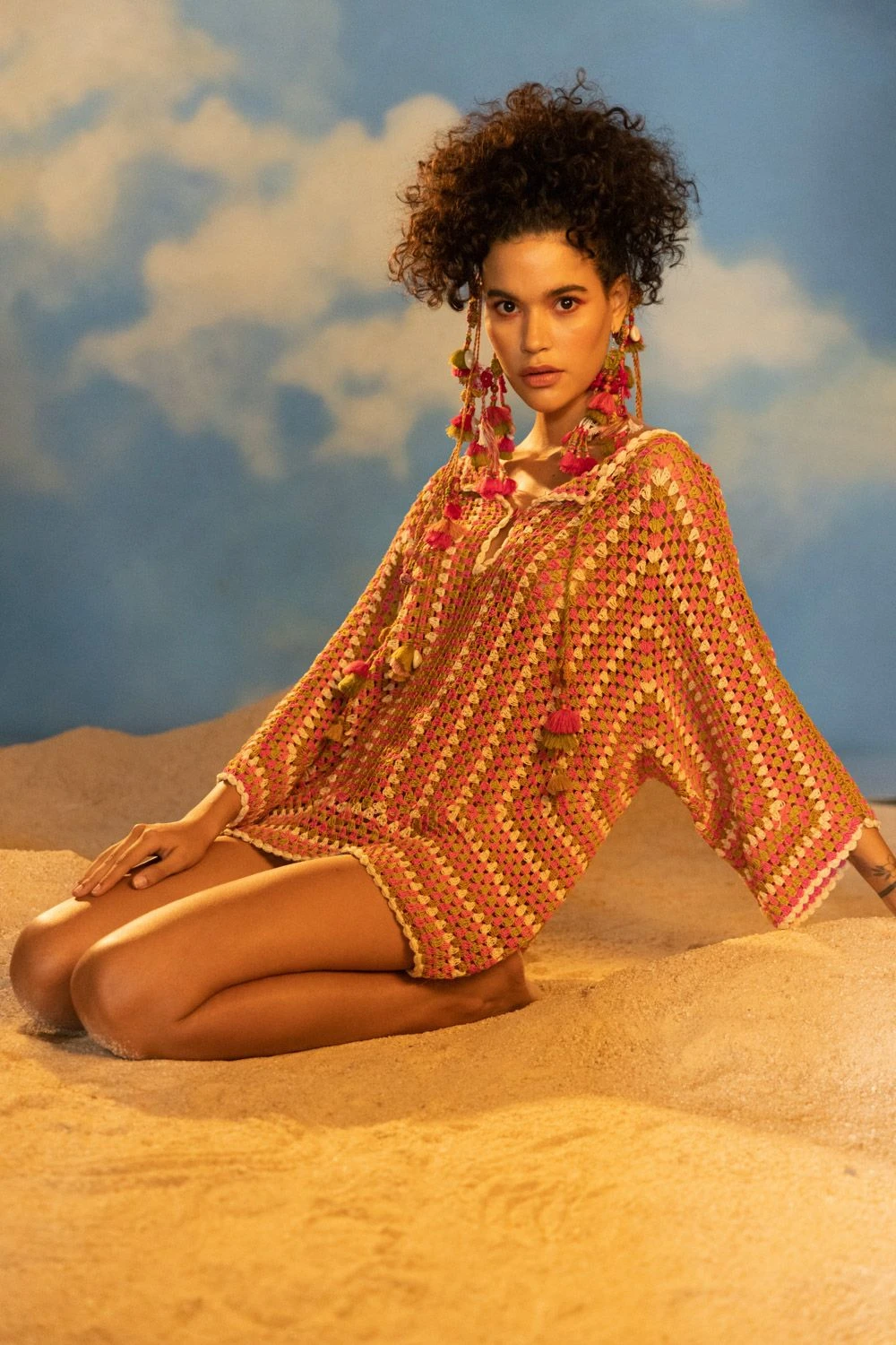 Discover the epitome of boho chic with this Hexagonal Beading Multi-Colour Crochet Top. The bohemian vibes are elevated with a dori string closure, adding a touch of whimsy and charm to your ensemble.
