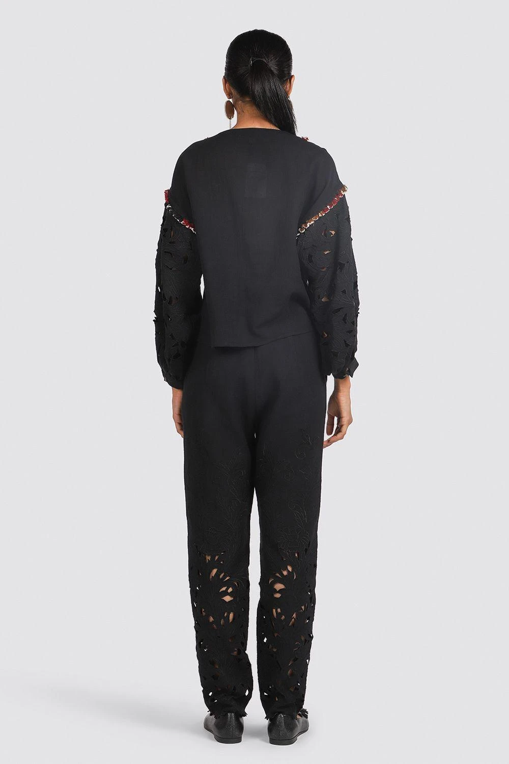 With its quilted yoke and cutwork sleeves, this black top is such a chic contemporary piece. It will suit women of all ages.