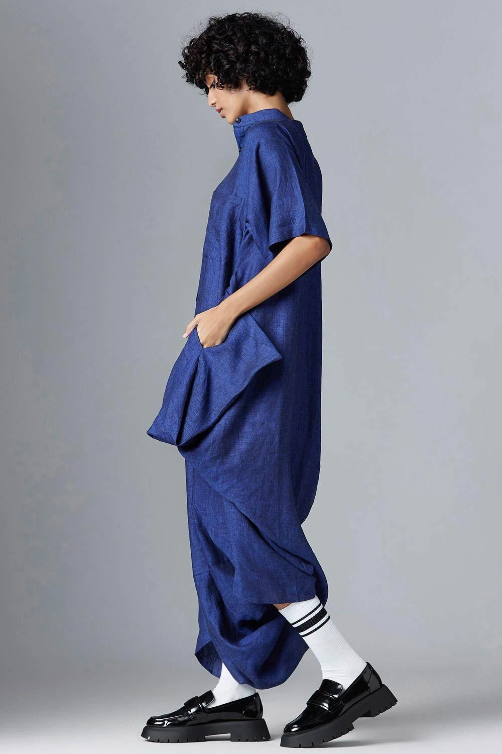 From your work desk to the brunch table & from lounging at home to catching flights, you can always count on this jumsuit. Crafted in linen, this jumpsuit features a mandarin collar, half front button-down placket and side pockets.