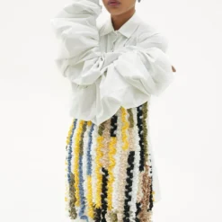 For an easy glam look, this black cropped top is a great choice. It is cut in 100% cotton with a ruched effect at the front. It features an asymmetric shoulder line and an easy side zip closure.