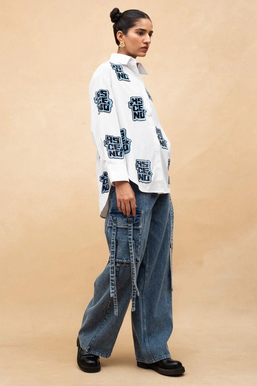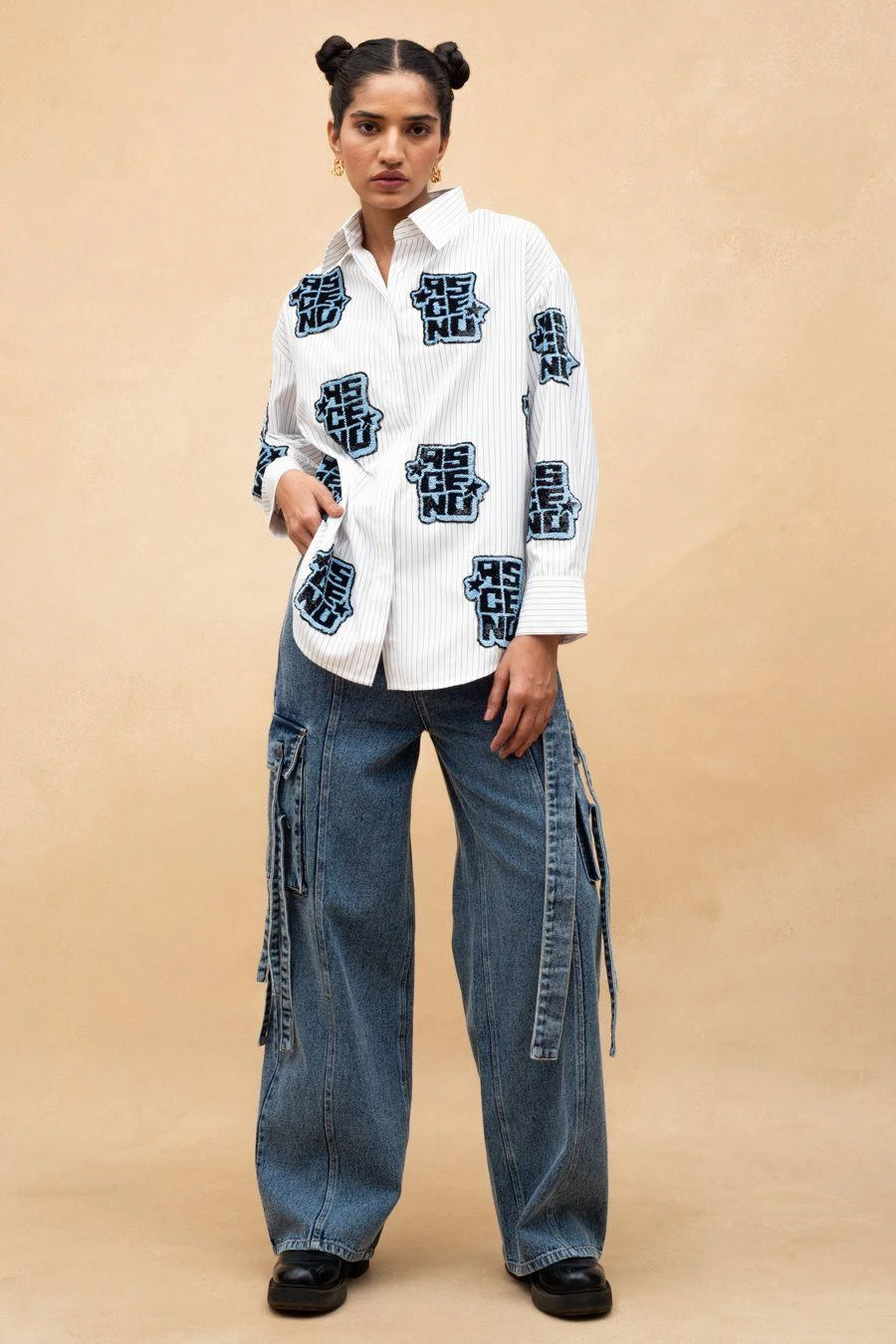 The perfect amalgamation of style and comfort, this relaxed fit shirt is perfect for a day out. Crafted in cotton & polyester, this handcrafted oversized shirt comes with a classic shirt collar and front button closure.