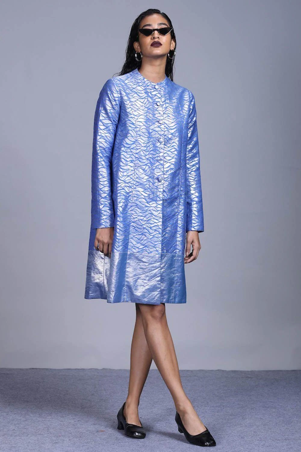 Hemang Agrawal Udaka Silver Brocade Panelled Jacket Dress