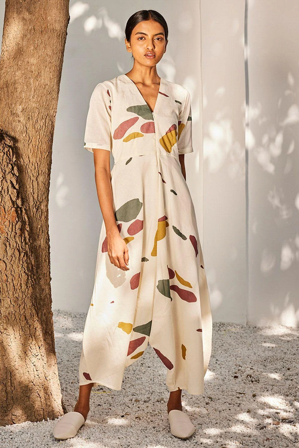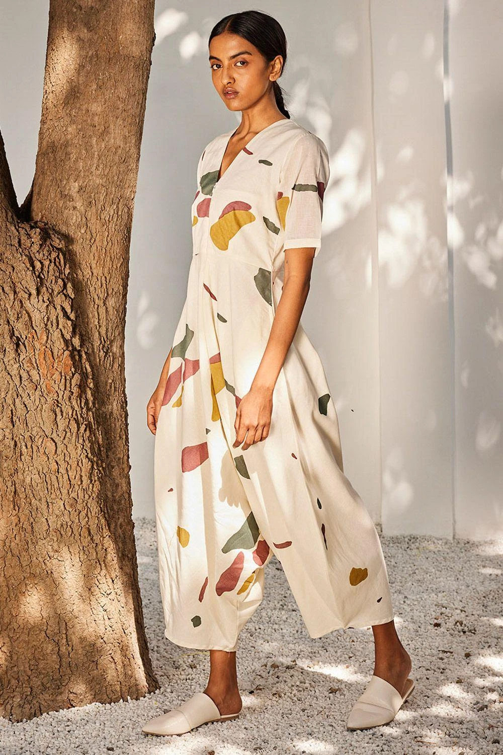 Step into elegance with this ecru terracotta print jumpsuit. A concealed zipper, attached lining, and stylish half sleeves make this a must-have for your sophisticated wardrobe.