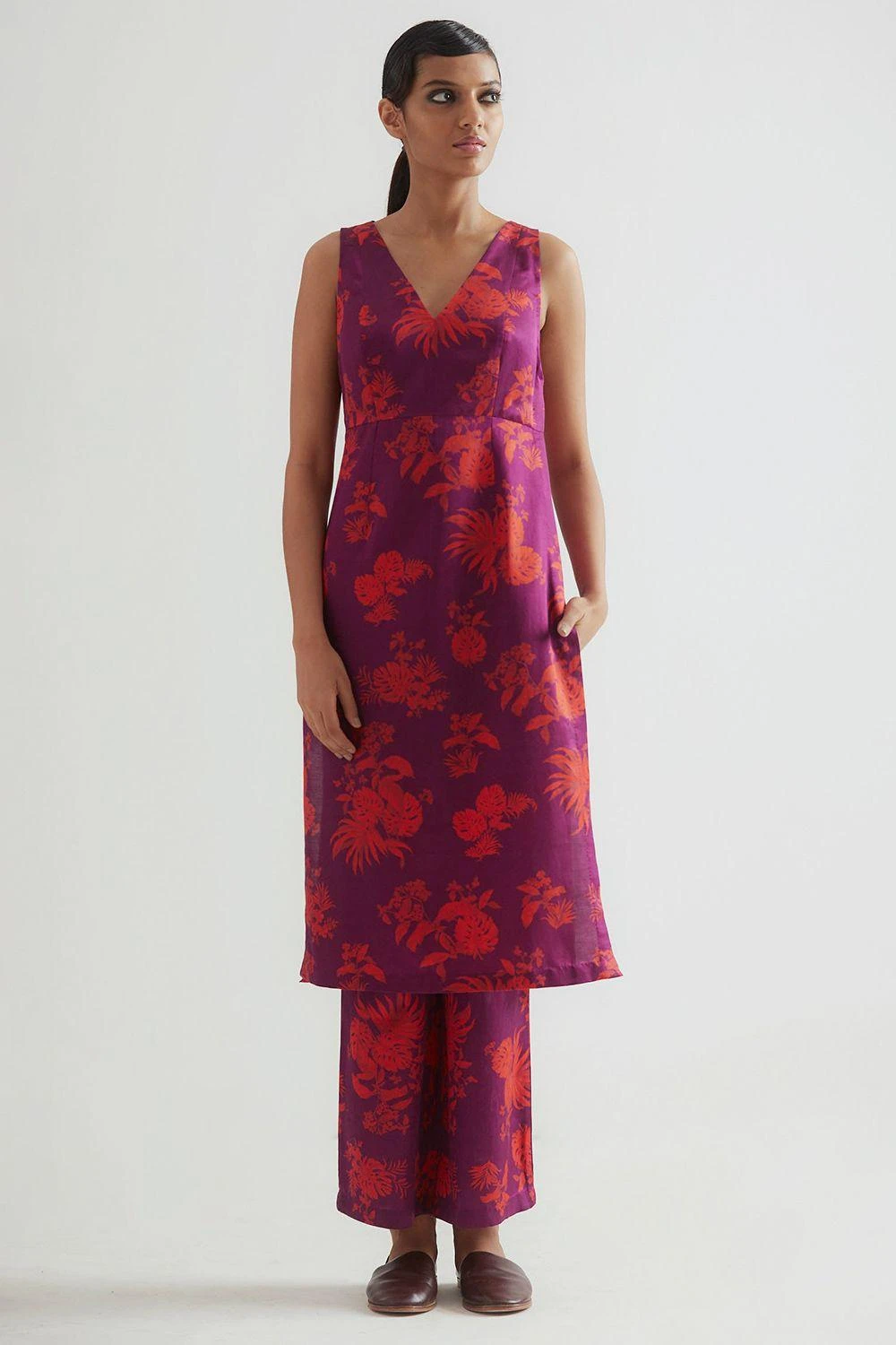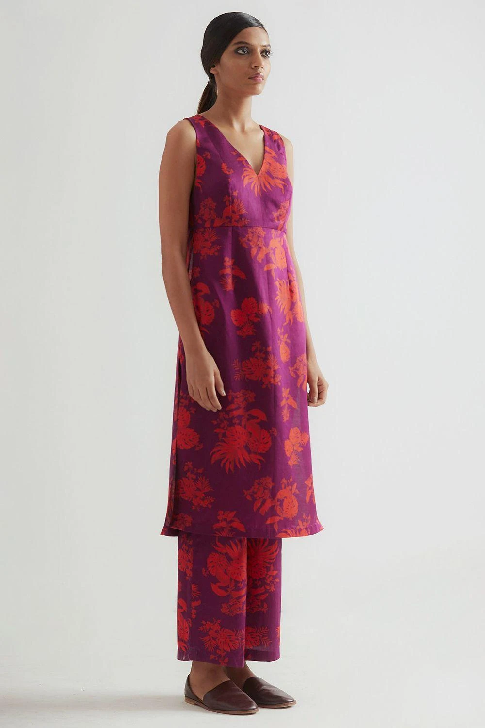 We love this mirissa purple toned printed kurta pant set by Kshitij Jalori due to his playful and feminine combination of colors put together in a comfortable cotton silk satin fabric ideal for any casual occasion.