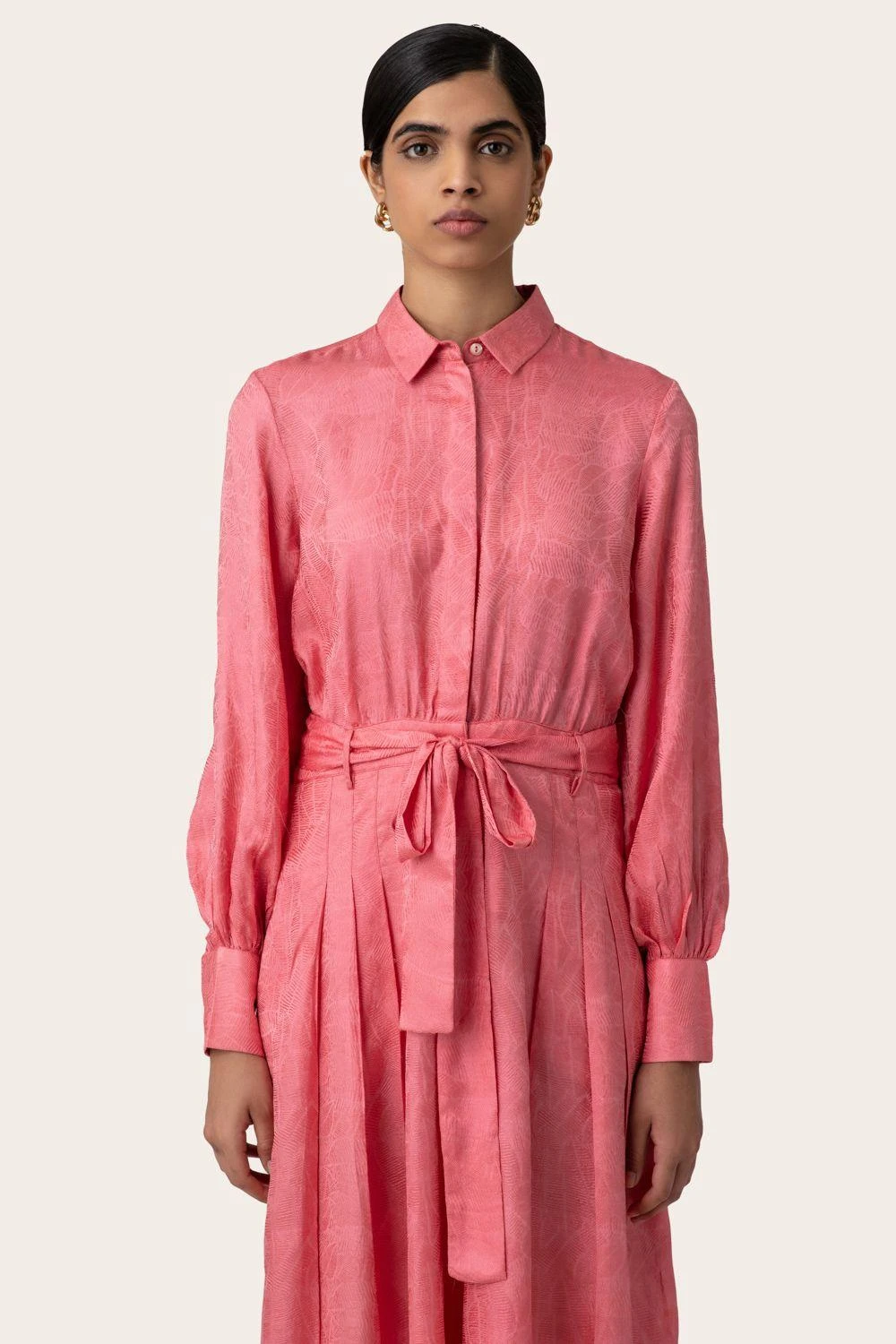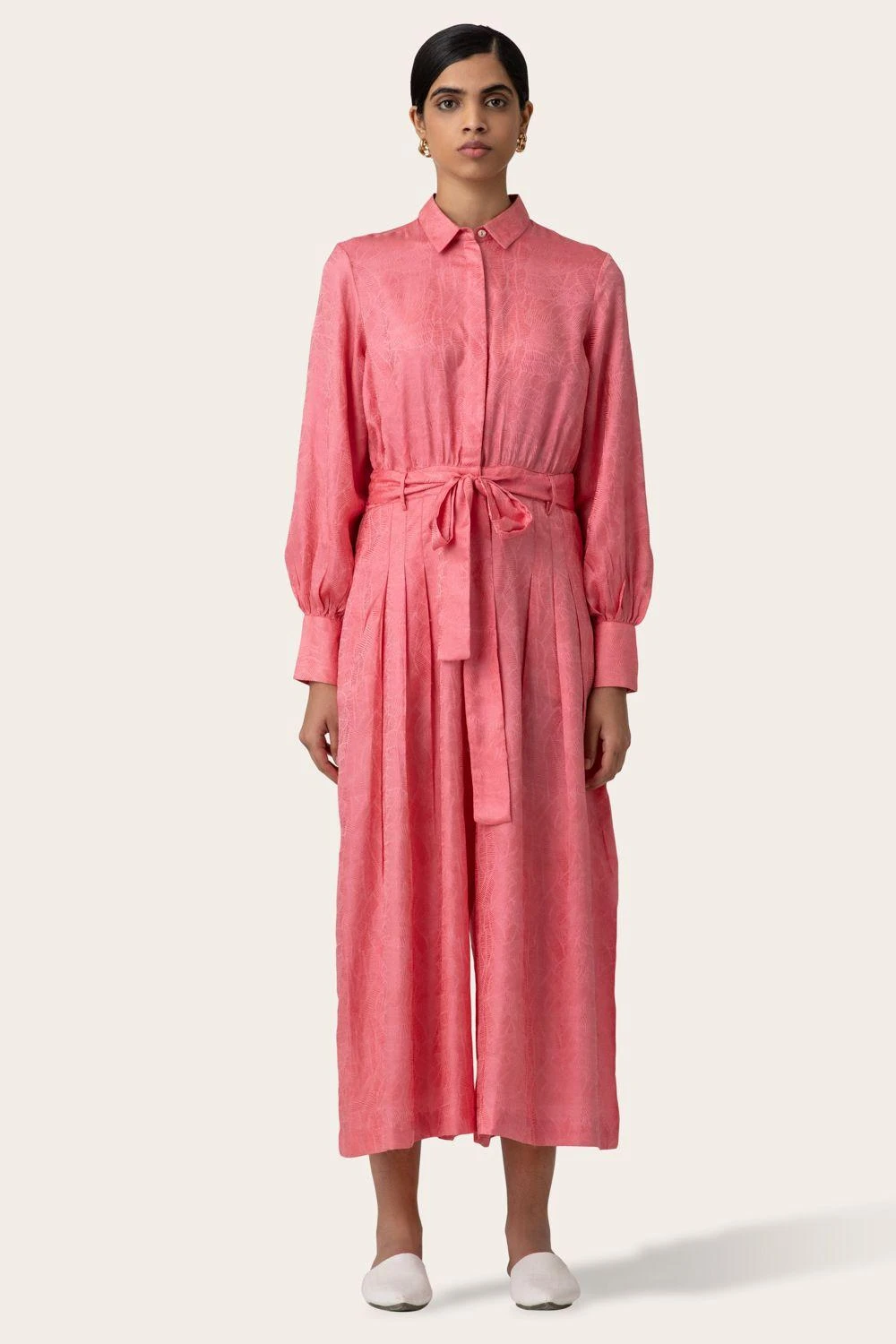 Groove from day to night in this stylish all-in-one jumpsuit. ItÆs cut from lightweight tanchoi silk patterned with an abstract leaf texture and has a self-tie belt around the waist. Style it with a pair of golden hoops.
