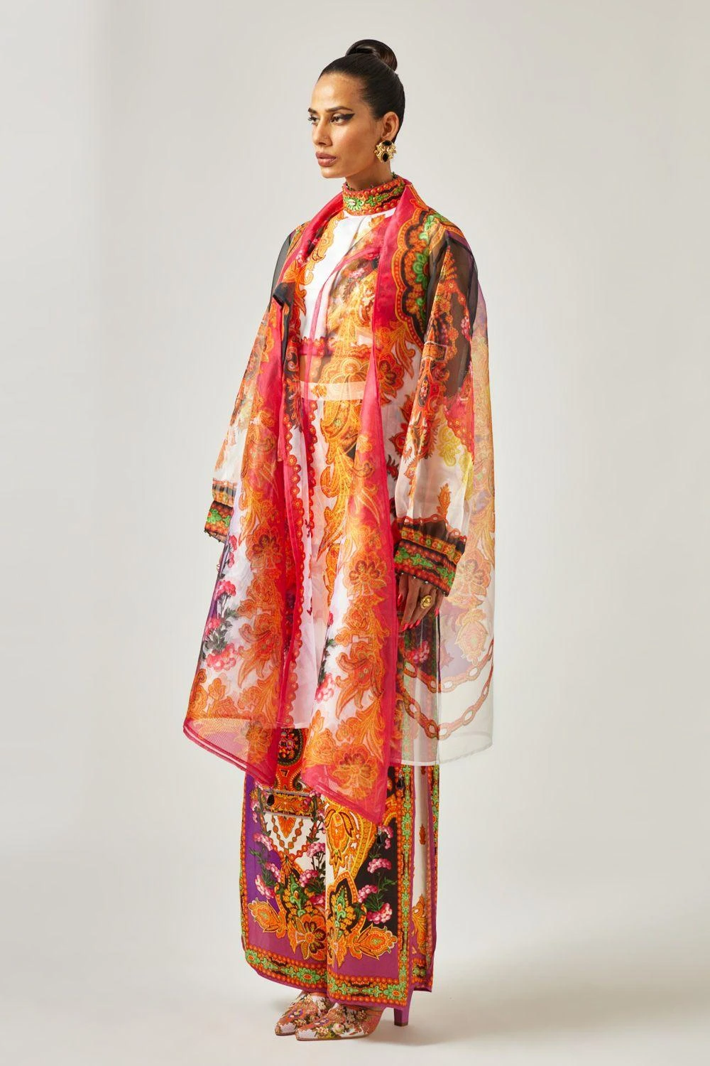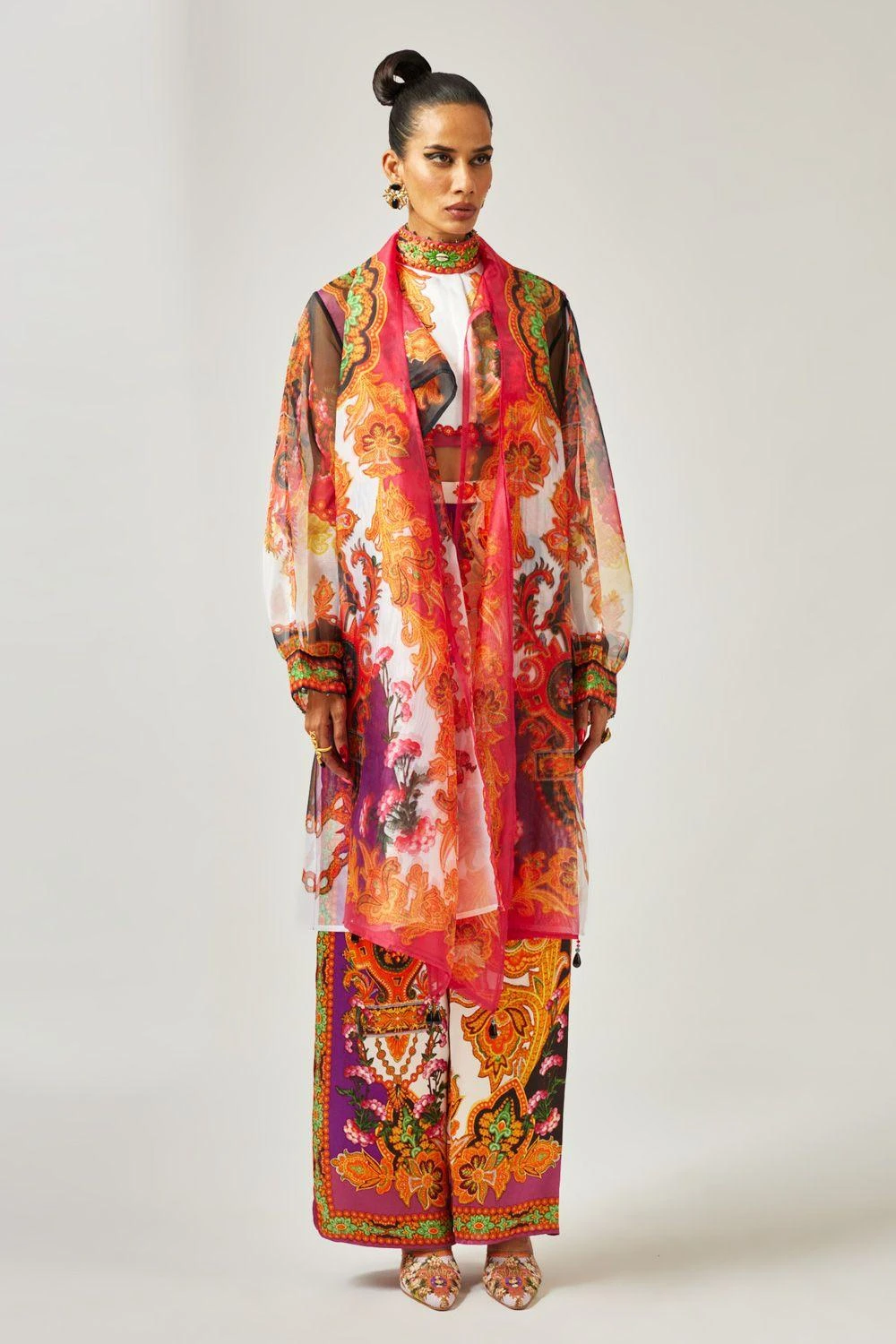 Indulge in the allure of this embellished blouse, a chic masterpiece adorned with captivating prints that elevate your style with effortless elegance.