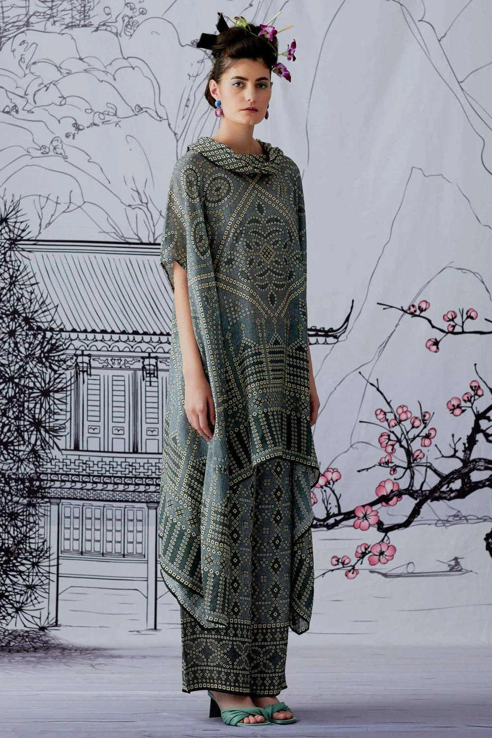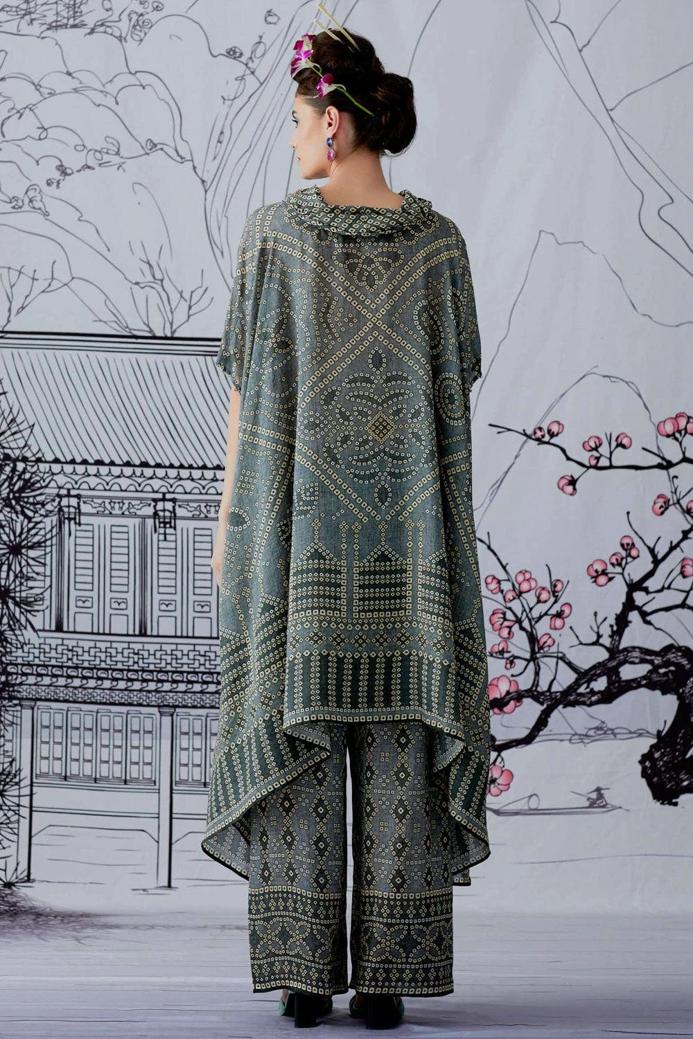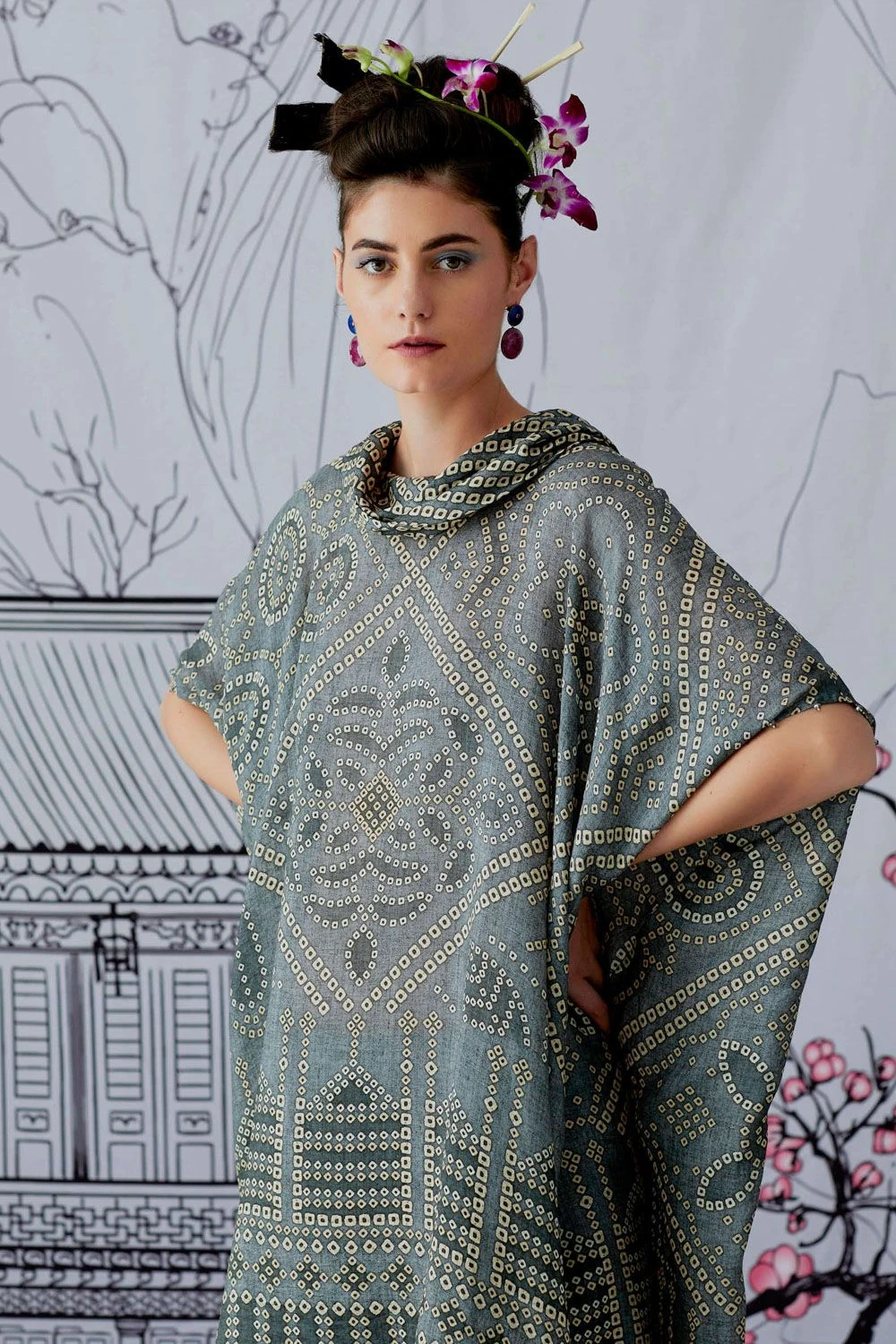 This draped tunic has drop sleeves & a draped cowl neck. Style this elegant piece for daytime events, with statement stud earrings to complete your look.