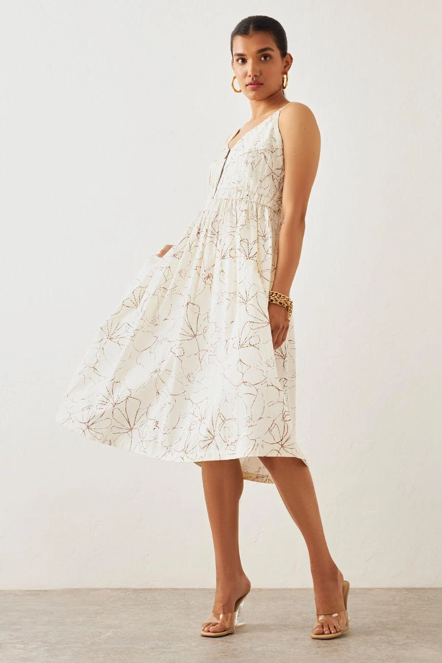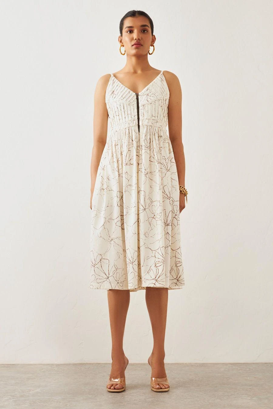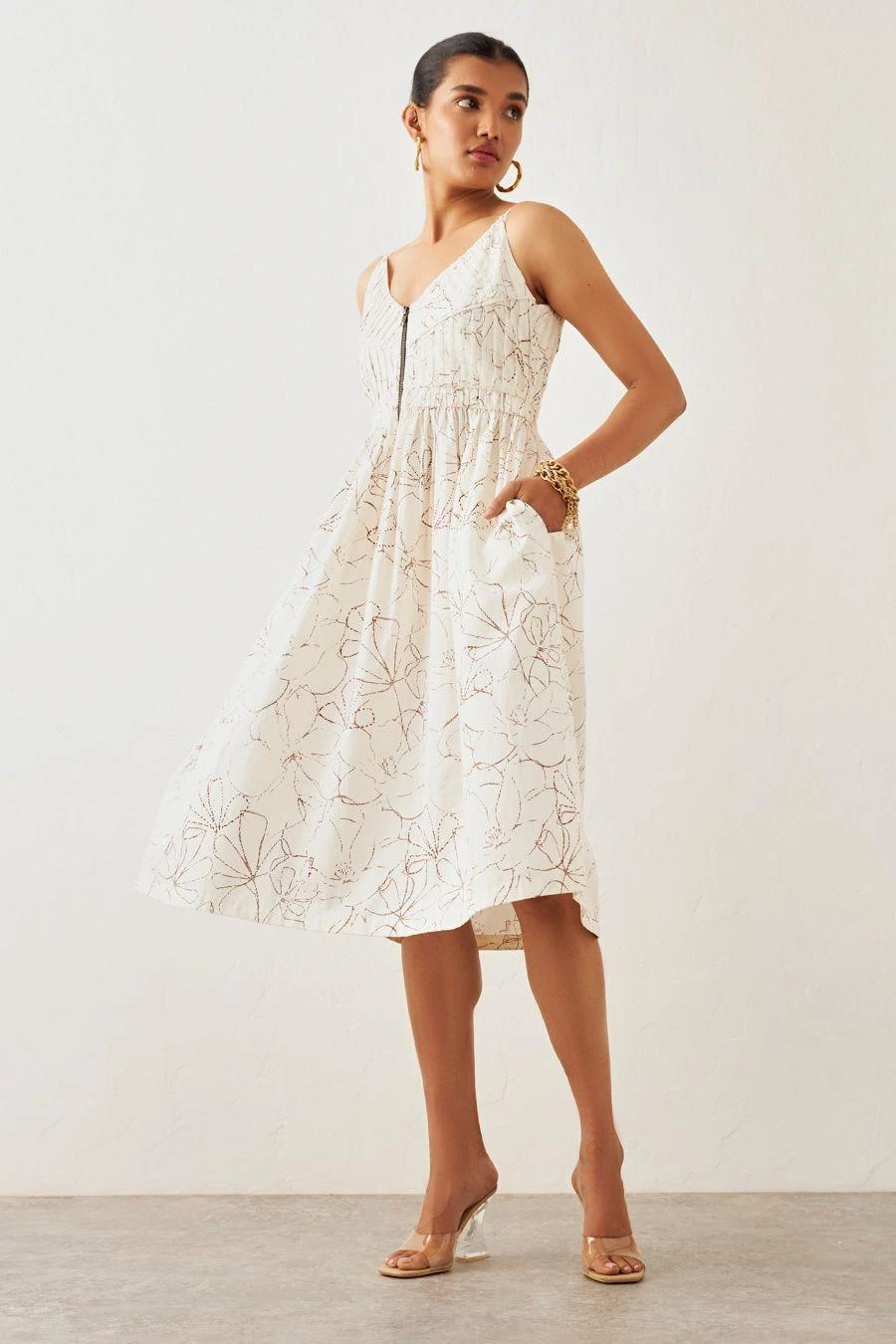 The perfect amalgamation of style and comfort, this dress is perfect for a day out. Crafted in cotton, this garland printed dress features a pleated yoke, a metal zipper and side seam pockets.