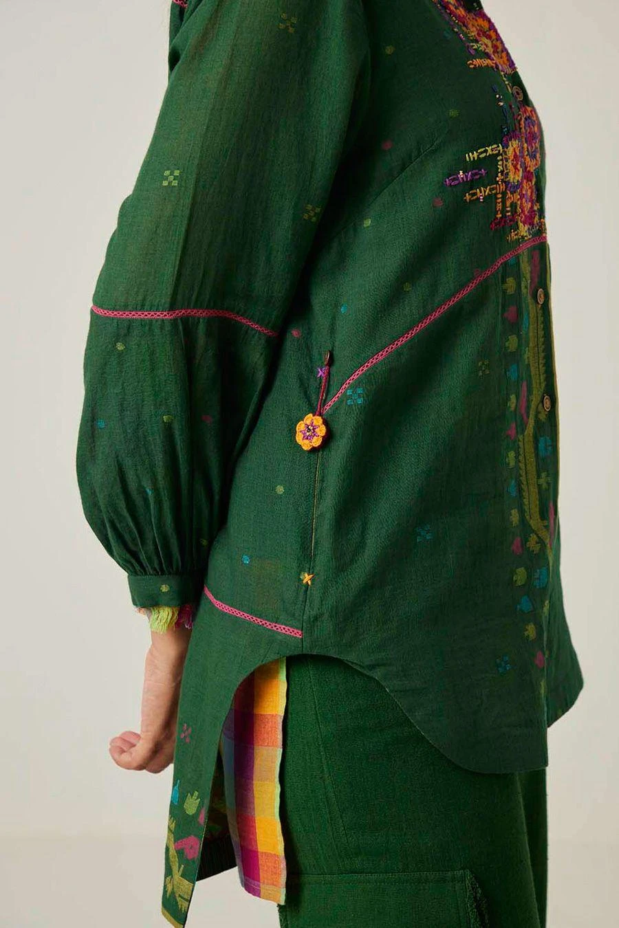 Material/Fabric : Shirt – Fine handwoven jamdani muslin, Slip – Handwoven check mul cotton