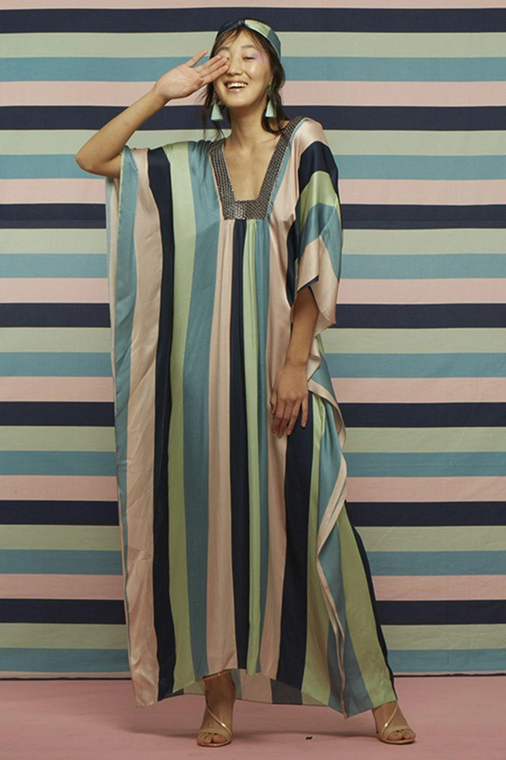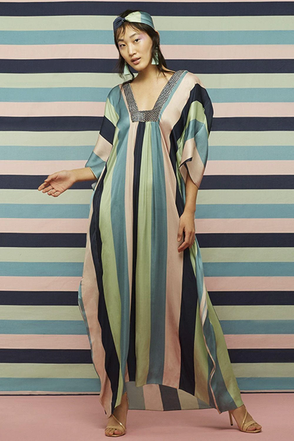 SVA Striped Kaftan Set With A Textured Neckline