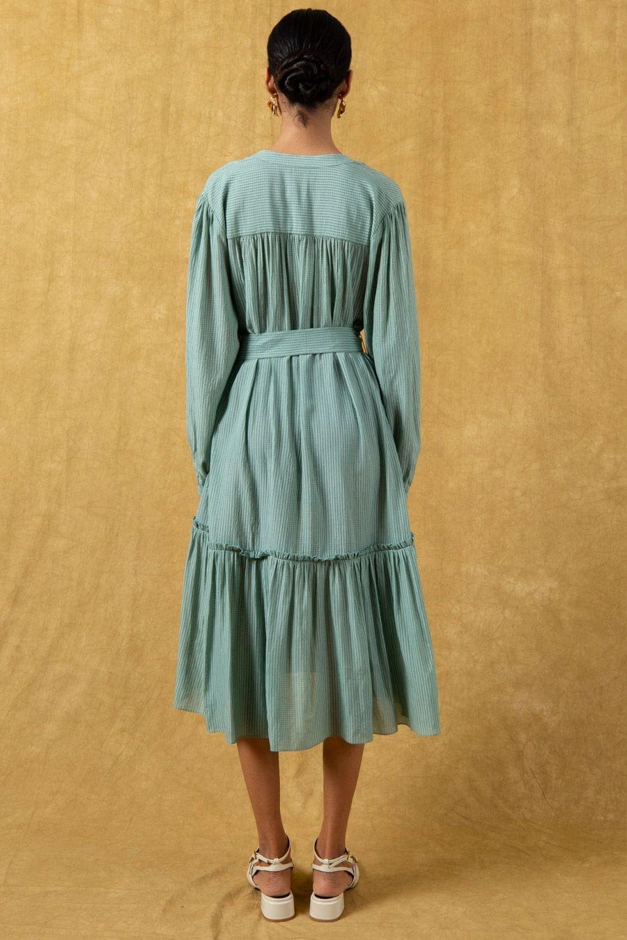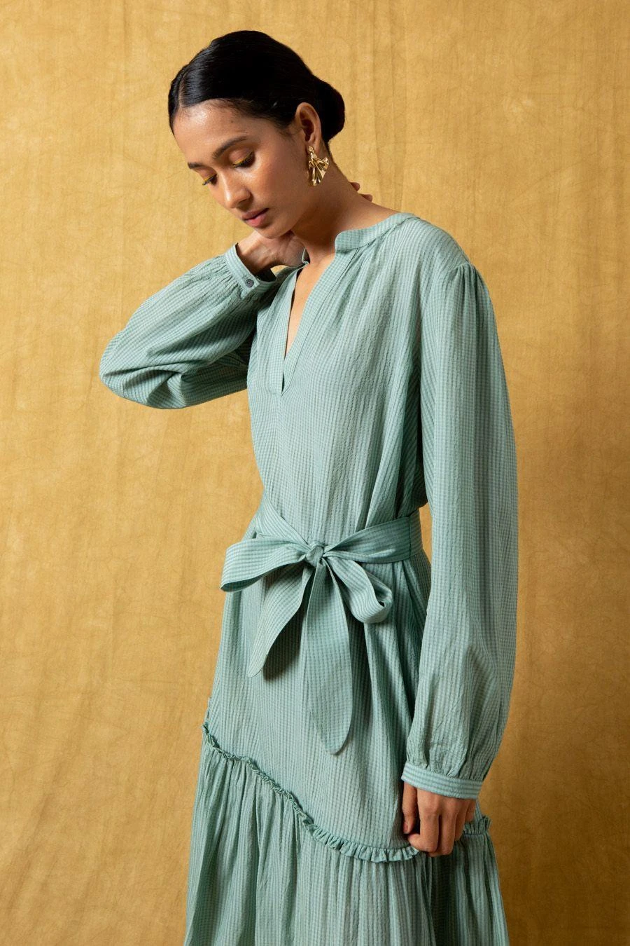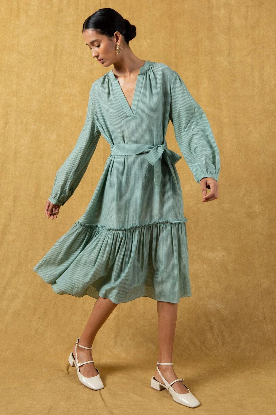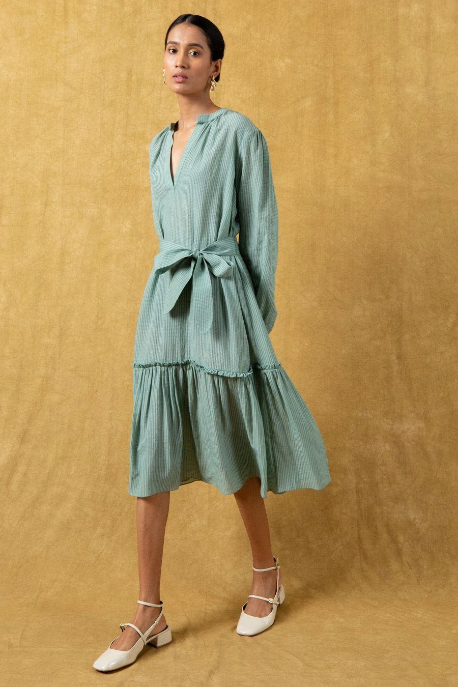 From your work desk to the brunch table & from lounging at home to catching flights, you can always count on this dress. Crafted in cotton, this V-neck dress features gathered details and is paired with a coordinated belt.