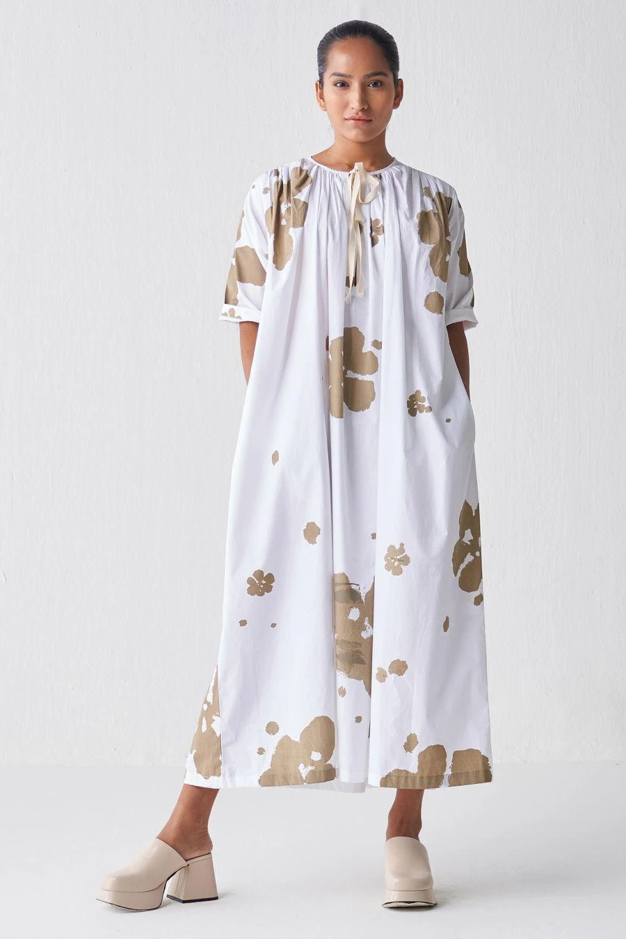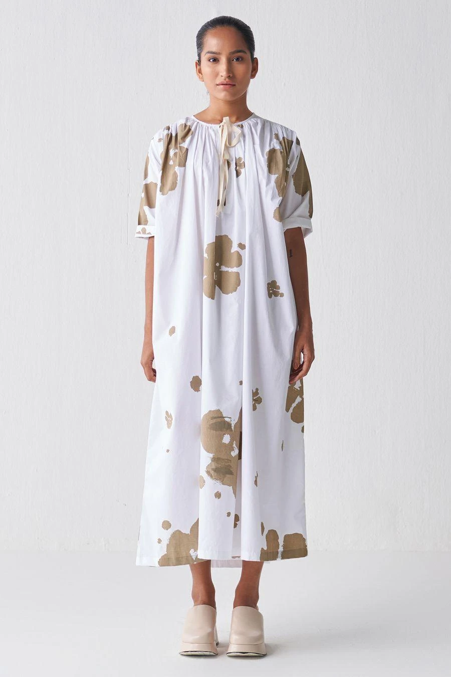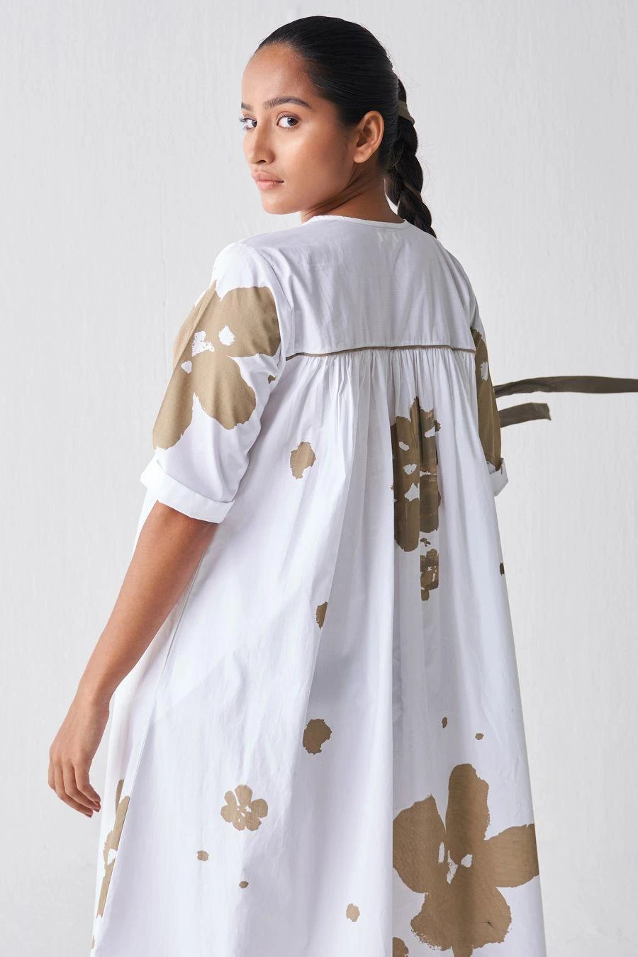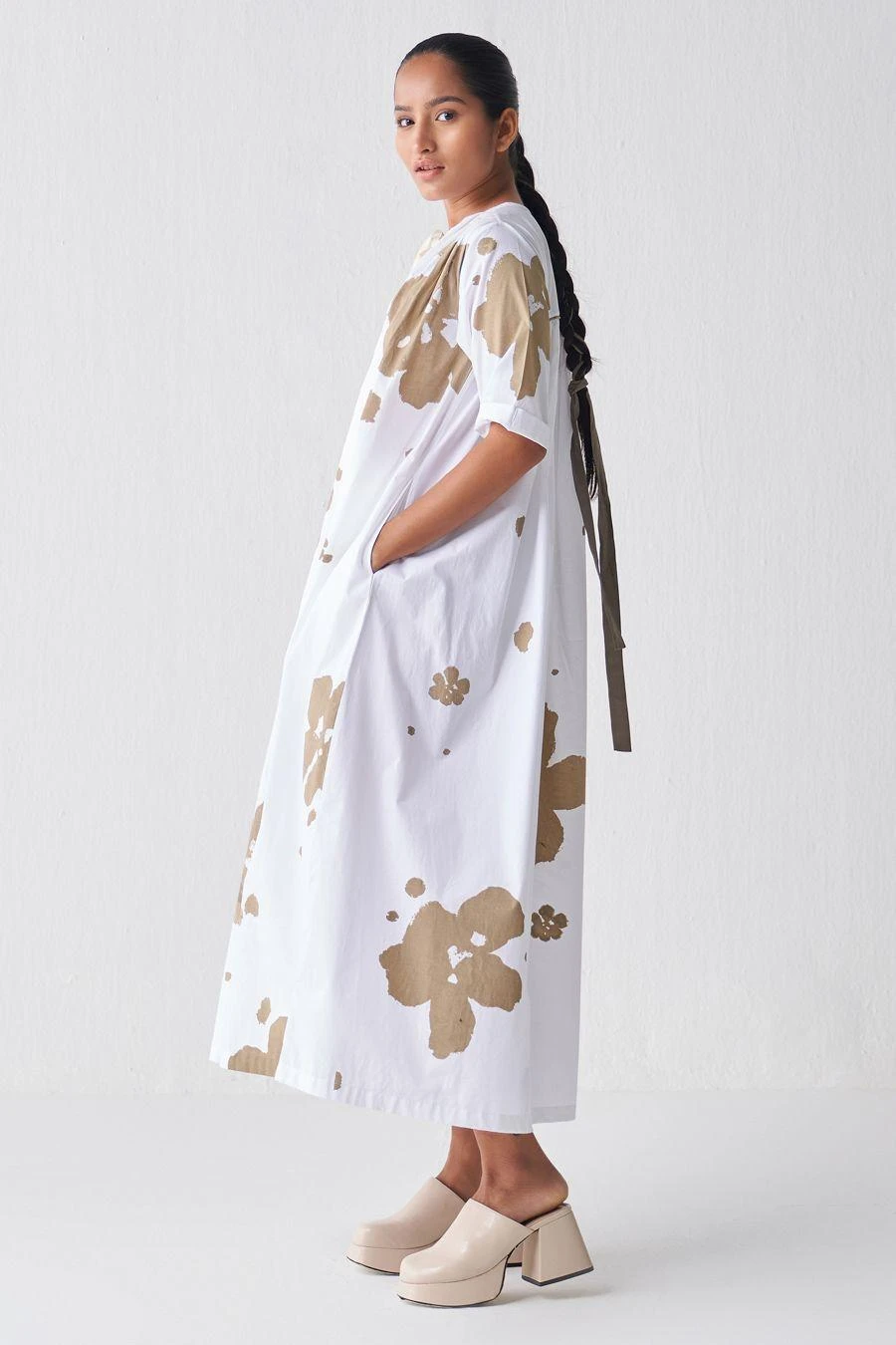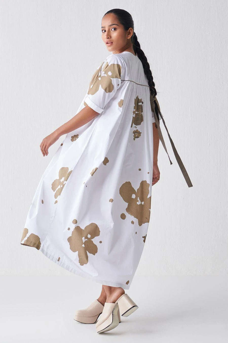 From your work desk to the brunch table & from lounging at home to catching flights, you can always count on this dress. Crafted in poplin, this sleeveless dress features sage floral motifs with a front twill tape closure.